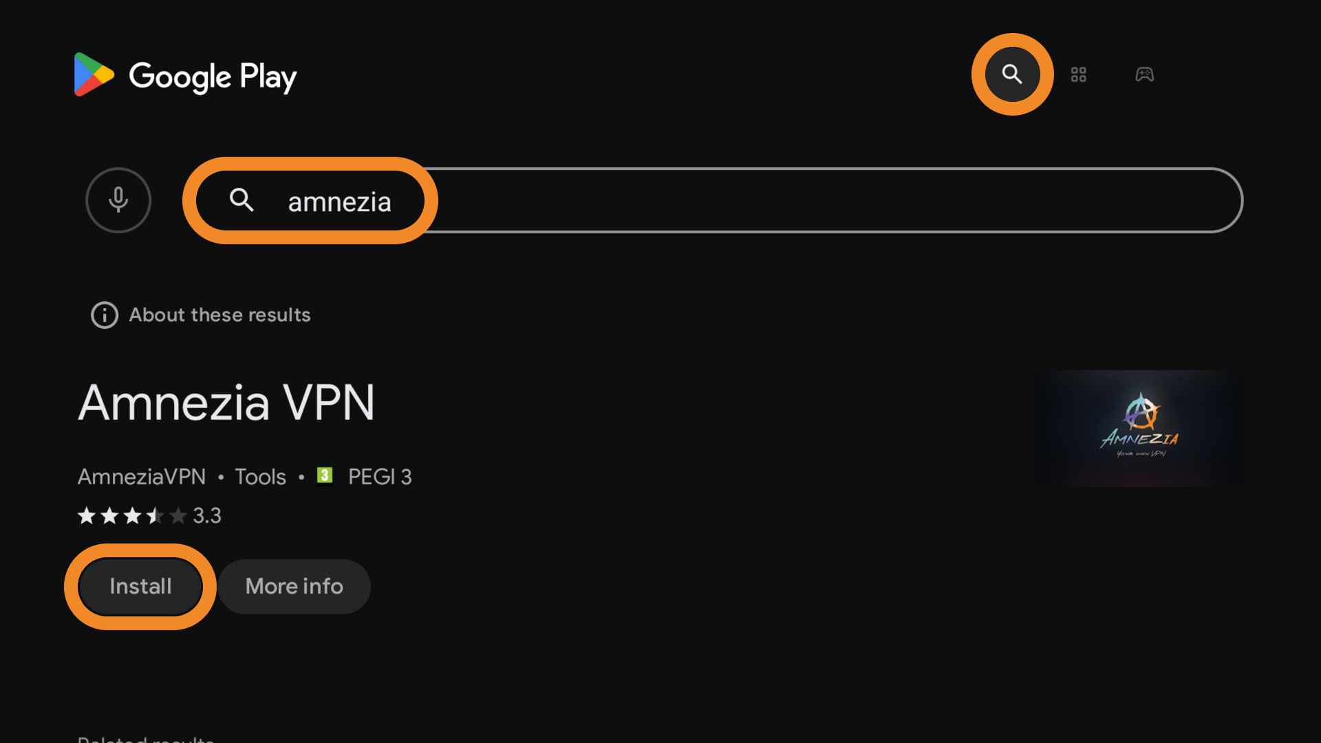 - Open Google Play on Android TV and go to Search. In the top-right corner, tap the 🔎 (magnifying glass) icon.