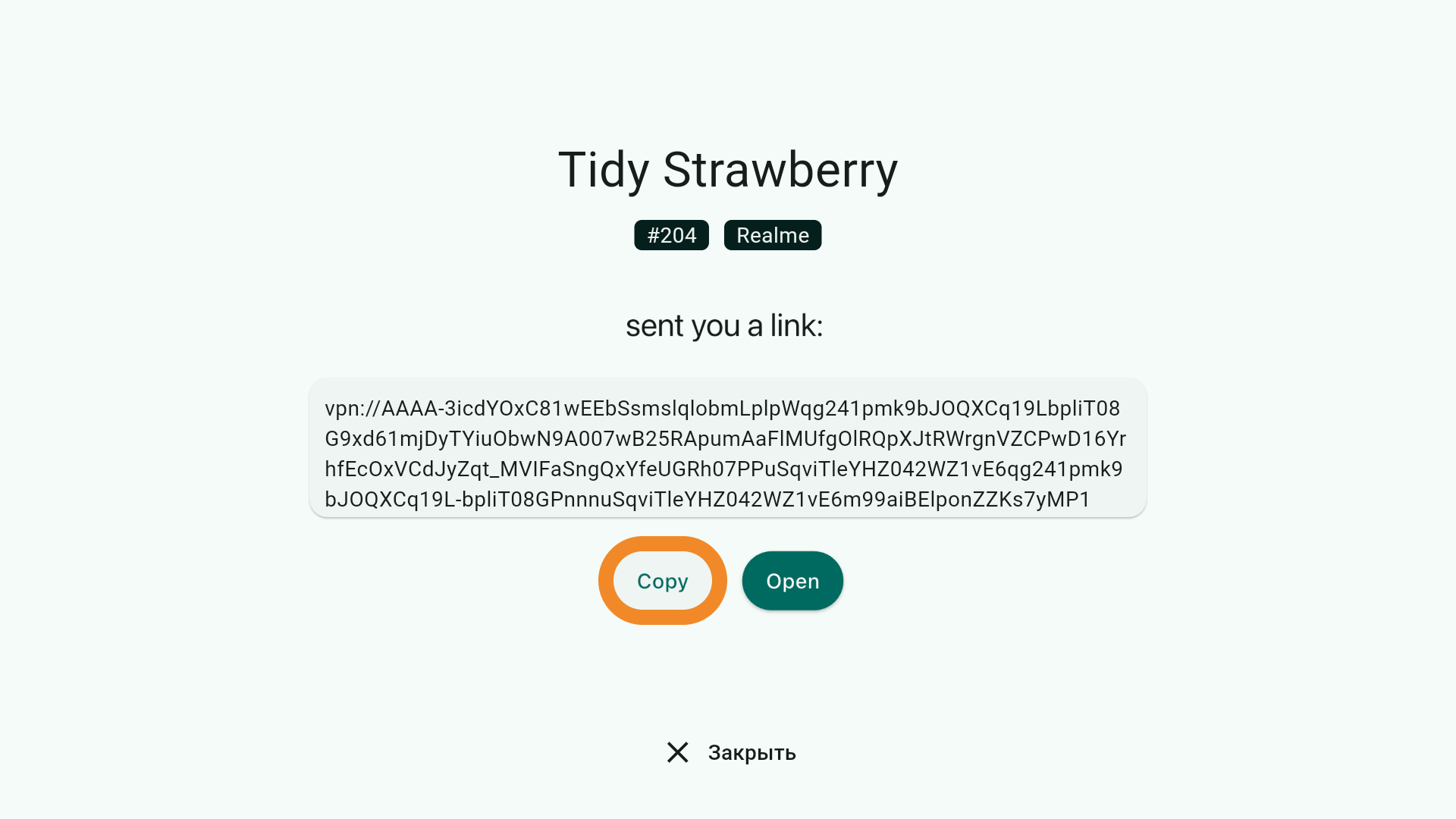 Use the second device where it’s convenient to copy the vpn:// connection key.