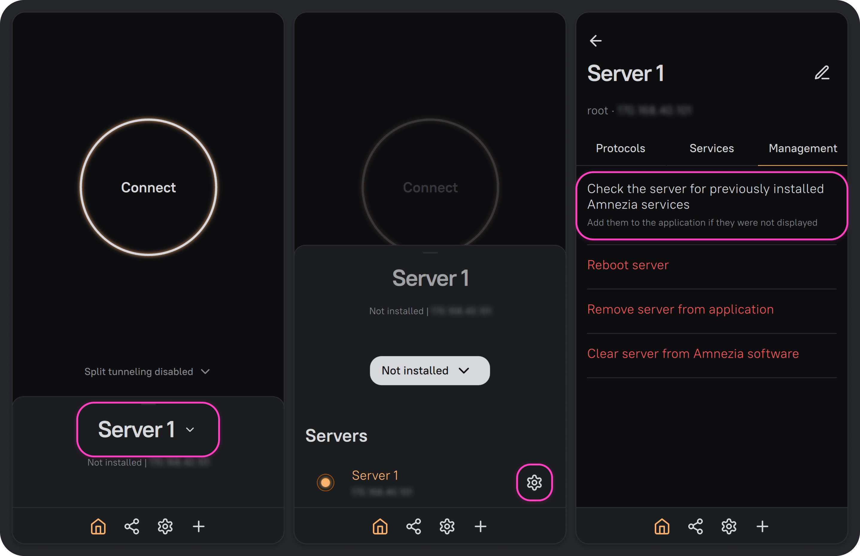 Use this to connect to a server that already has Amnezia services installed, without needing a backup file or full access key.