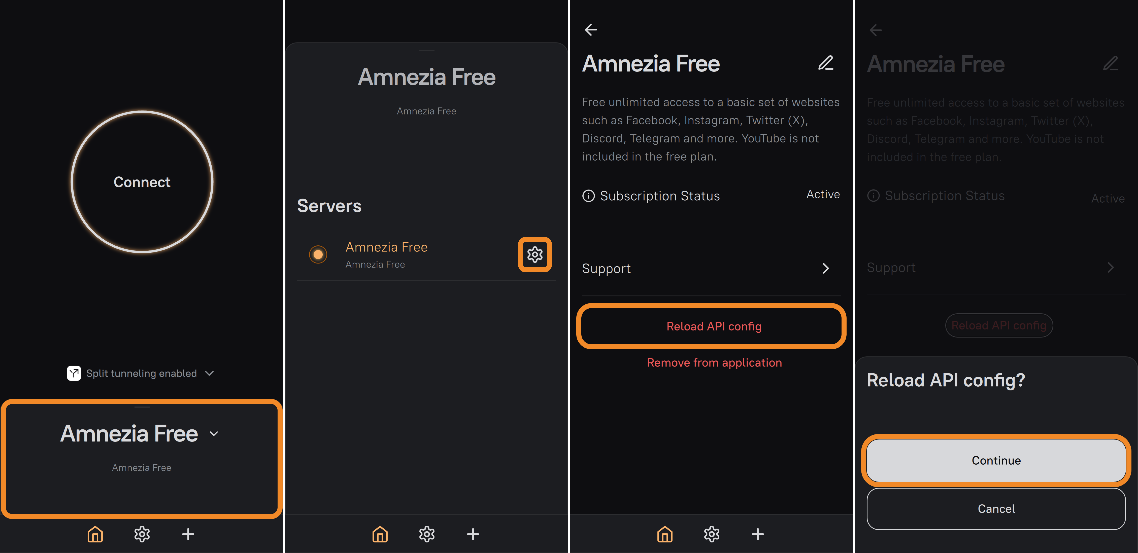 - In the settings section that opens, tap Reload API Configuration, then tap Continue.